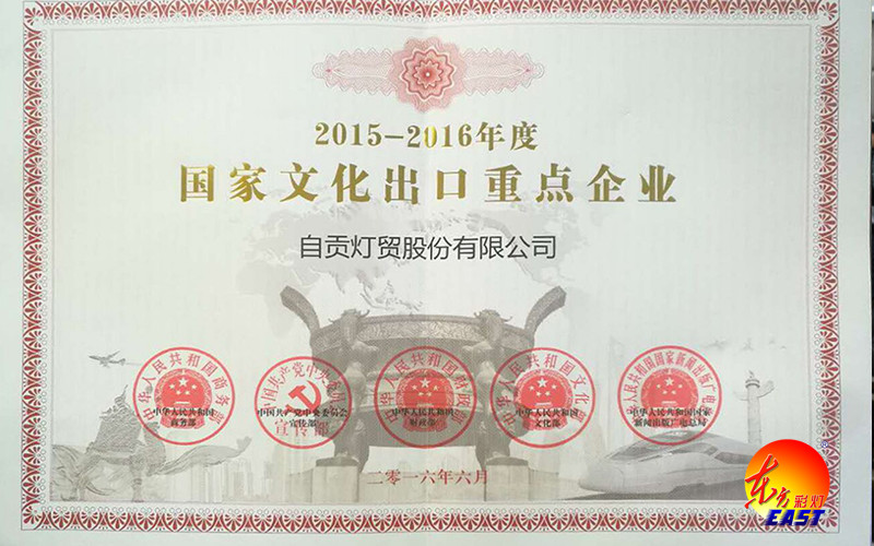 會(huì)上,省商務(wù)廳副廳長于濱向我公司董事長劉婭頒發(fā)《2015-2016年度國家文化出口重點(diǎn)企業(yè)》證書,這是我司自2007以來,第五次榮獲此殊榮,也是全國彩燈行業(yè)連續(xù)五屆十年獲此殊榮的企業(yè)。