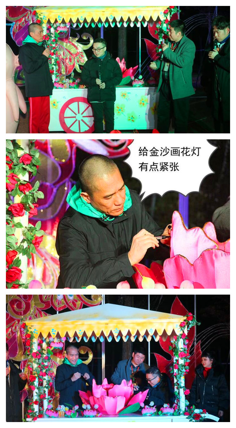 2月9日,戛納、金馬、金像多料影帝梁朝偉亮相金沙遺址太陽節(jié)燈會,對美輪美奐的東方彩燈贊不絕口?;顒蝇F(xiàn)場,梁朝偉還特意跟東方彩燈國韻總經(jīng)理李斌“學(xué)了一手”,親自參與制作了一盞精美的芙蓉?zé)簦诓薀羯蠈懴抡\意滿滿的“?!弊?,并啟動“超能力”點亮花燈,向來賓送上暖暖的新春祝福。