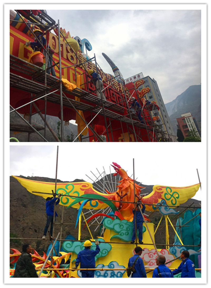 日前東方彩燈的能工巧匠們正對燈展現(xiàn)場部分燈組進行維護。新生的燈火汶川將更加璀璨奪目!