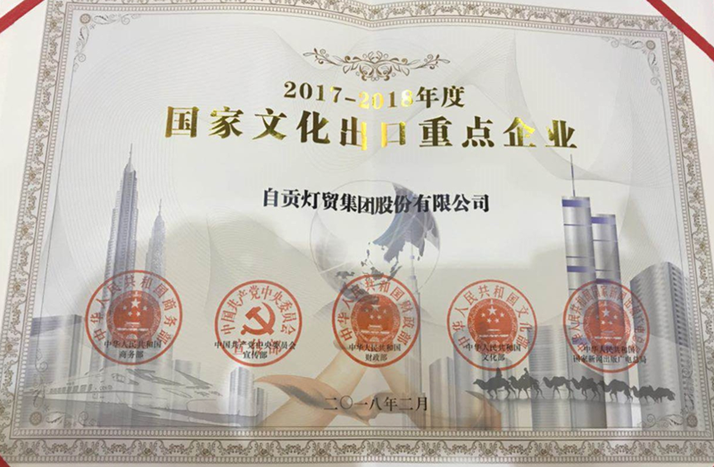 7月26日,四川省“國(guó)家文化出口重點(diǎn)企業(yè)”授牌儀式在省商務(wù)廳三樓會(huì)議室隆重舉行,自貢燈貿(mào)集團(tuán)股份有限公司再次入選“2017-2018年度國(guó)家文化出口重點(diǎn)企業(yè)”,是全國(guó)唯一連續(xù)六屆十二年獲此殊榮的彩燈企業(yè)。
