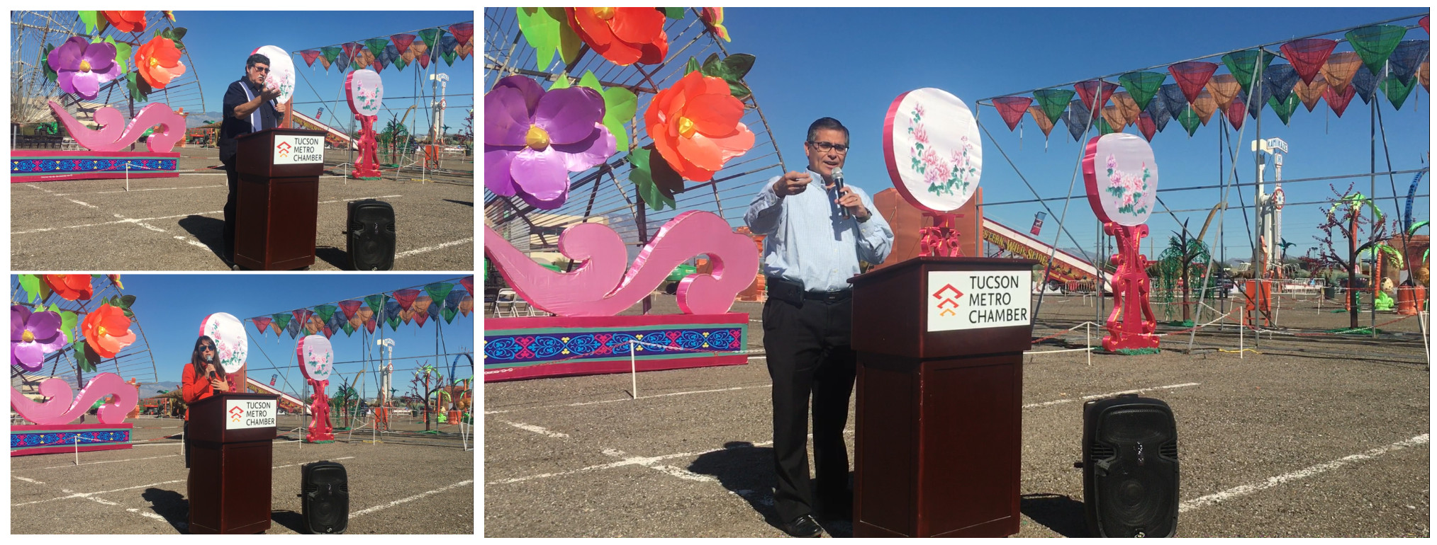 Pima郡行政長(zhǎng)官Ramon Valadez,圖森市常務(wù)副市長(zhǎng)Richard G. Fimbres,圖森市大都會(huì)商會(huì)董事長(zhǎng)Amber Smith分別發(fā)表致辭,感謝本次燈展活動(dòng)對(duì)中美文化交流作出的巨大貢獻(xiàn),希望促進(jìn)多元化的世界文化交流。他們?cè)谥v話中贊嘆東方彩燈精妙絕倫的制燈工藝,稱“2018世界之光圖森彩燈嘉年華”用傳統(tǒng)、時(shí)尚、新鮮、現(xiàn)代的元素直面美國(guó)觀眾。當(dāng)?shù)仉娕_(tái)、電視臺(tái)、報(bào)紙等17家新聞媒體出席新聞發(fā)布會(huì)并對(duì)燈展進(jìn)行了相關(guān)報(bào)道。
