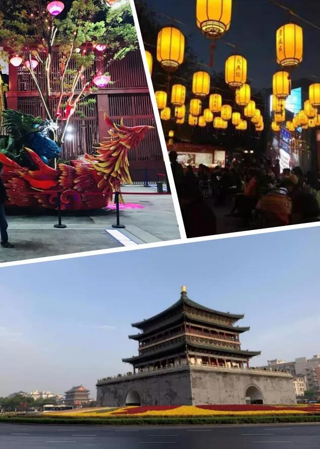 夜晚降臨,我們一行來到西安另一標(biāo)志性建筑-鼓樓。它橫跨大街,和鐘樓遙相呼應(yīng)。晨鐘暮鼓,雄渾莊嚴(yán)。登臨樓上,憑欄便能眺望全城景色。