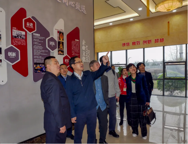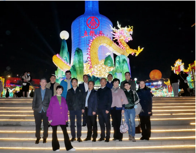 (考察團一行在公司創(chuàng)意、設計、制作的《五糧液》燈組合影)