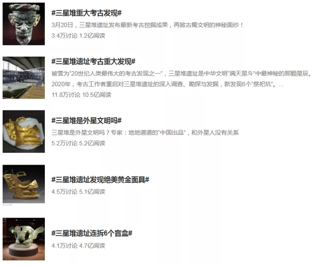 有關(guān)“三星堆”的話題上了熱搜
